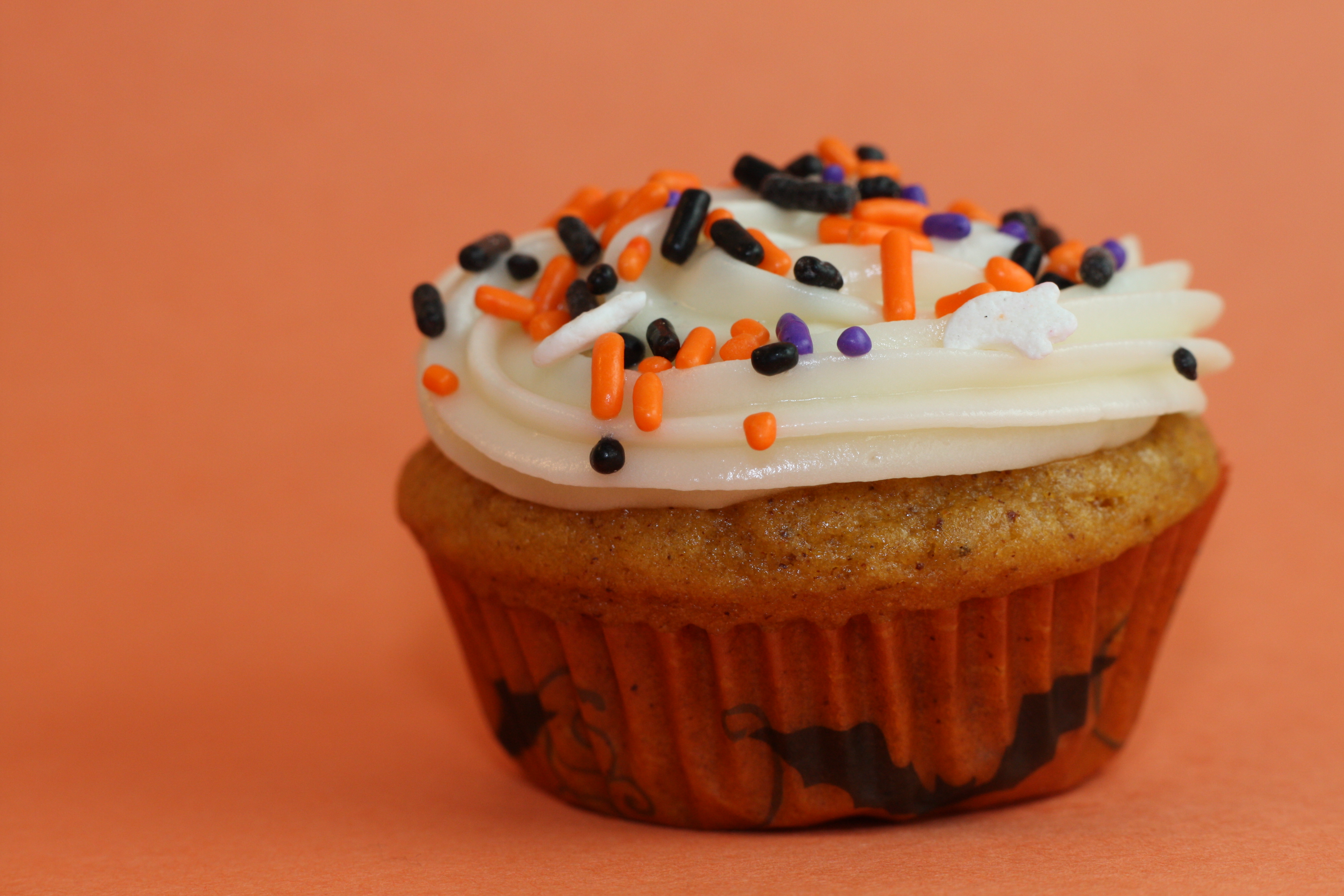 I just love it when I have some leftover pumpkin in the refrigerator, and it just so happens that I find a recipe that calls for exactly that amount. I had to make either a cake or cupcakes for the annual Boo Ridge event at my daughter’s school. I have to admit that I live for these requests. Someone is asking me to bake – not just asking, pleading. I just wish I had time to bake more! I found this recipe, which I adapted slightly, in this month’s Bon Appetit. We had leftover Halloween sprinkles left over from the cupcakes my daughter made the other week with her grandmother, so I was set. These cupcakes were divine – but the frosting, wow. Cream cheese frosting gets me every time. It is so simple, yet so ridiculously good. The combination with the pumpkin cupcakes was perfect. I am actually shoving one in my mouth as I am writing this now. I saved a few out for us to enjoy, I just couldn’t give them all away. Happy Halloween!!!