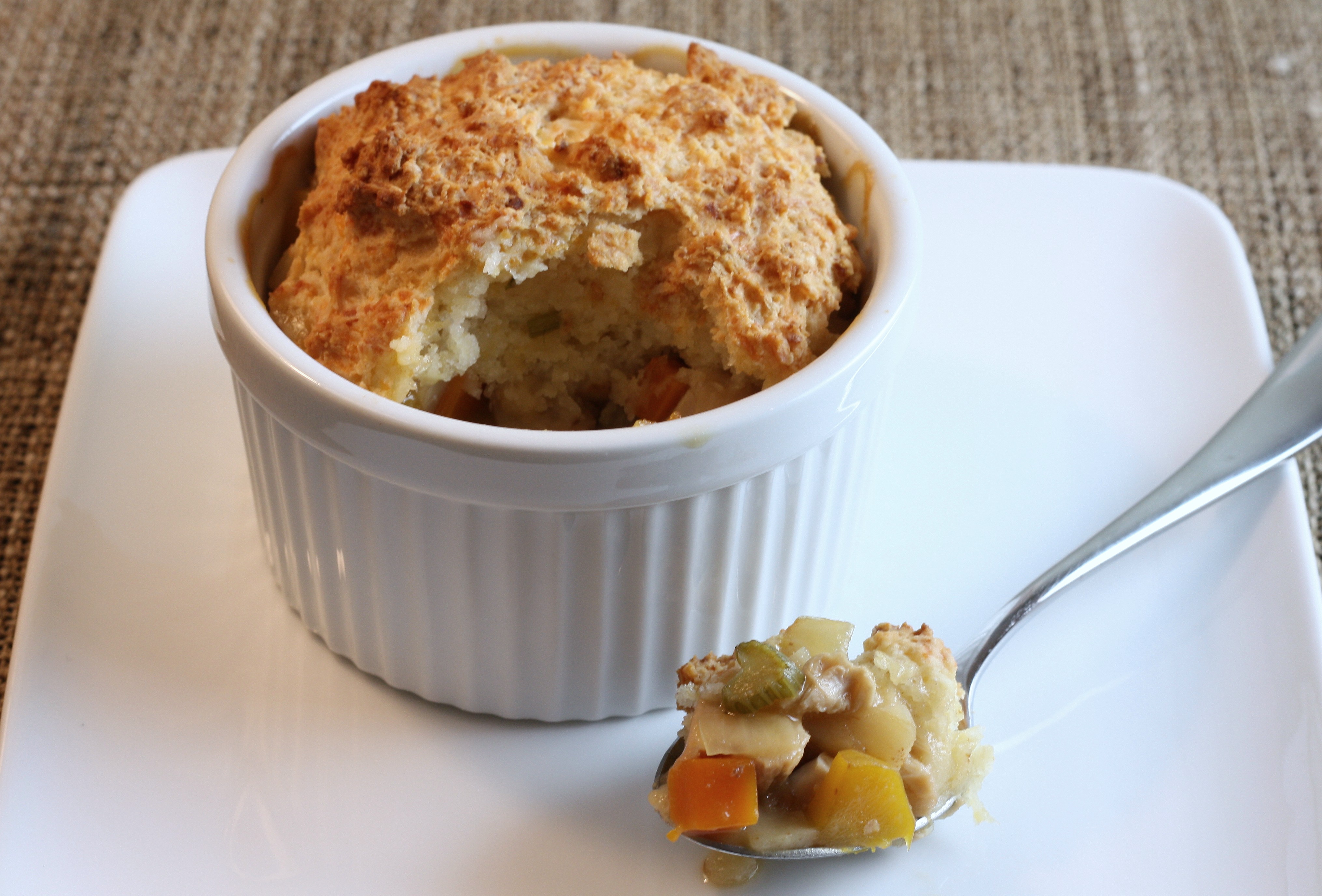 For a printer-friendly recipe, click here: Chicken Pot Pies with Root Vegetable and Cheddar Biscuit Crust