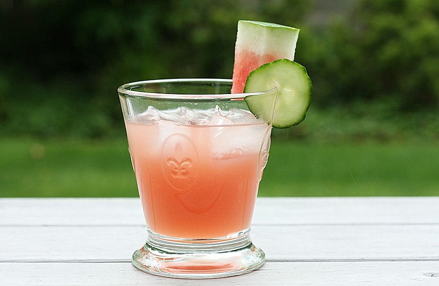 1. This looks delicious! I love cucumber drinks! However, I think your garnish is a little clunky – you don’t really need the chunk of watermelon, it adds too much pink to the scene in the wrong place. Next time just do the slice of cucumber. If you feel really urged to include watermelon, do a thicker slice of cucumber with a ball of melon on a skewer. That will push the pink color away from the rest of it and provide an interesting imbalance.
