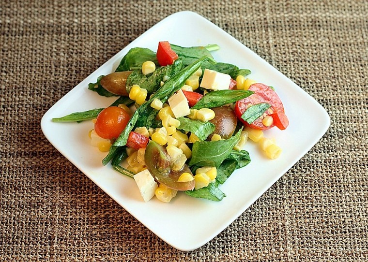 For a printer-friendly version of this recipe, please click here: Golden Corn Salad with Fresh Basil and Arugula