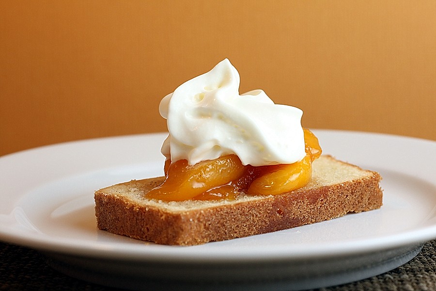 For a printer-friendly version of this recipe, please click here: Sour Cream Pound Cake with Lavender Peaches