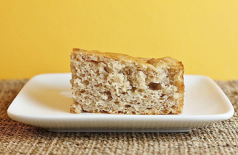 Do you ever get tired of making banana bread with your overripe bananas?  I actually don’t – my family loves my mother’s banana bread recipe, I can always count on each and every one of them to fully enjoy it when I pop one in the oven.  But, I can never say no to a snack cake.  There is something just so appealing to a cake that asking you to eat it as a snack – instead of dessert.  It is like you are getting permission to have a few desserts during the day.  So, when I was flipping through my Cooking Light magazine, and found this recipe, I could not help but run out to the store and get some bananas to hide until they were too brown to eat.