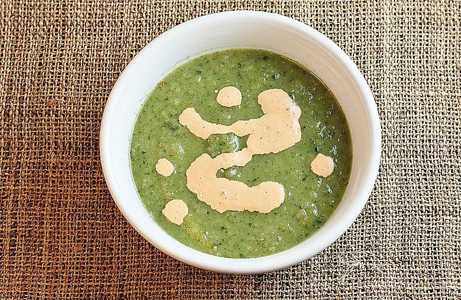 For a printer-friendly version of this recipe, please click here: Fennel and Spinach Soup with Roasted Pepper Yogurt
