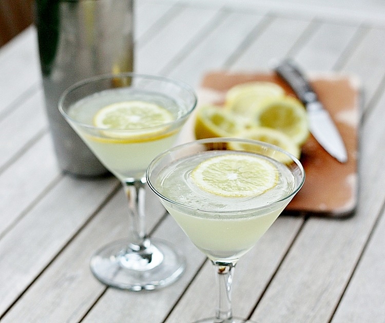 The recipe above makes 8 drinks. To make 2 drinks, take a shaker and fill with ice cubes. Pour 1/2 cup vodka, 2 tablespoons fresh lemon juice and 2 tablespoons simple syrup into the shaker. Shake well, and strain into two martini glasses. Garnish with lemon slices.