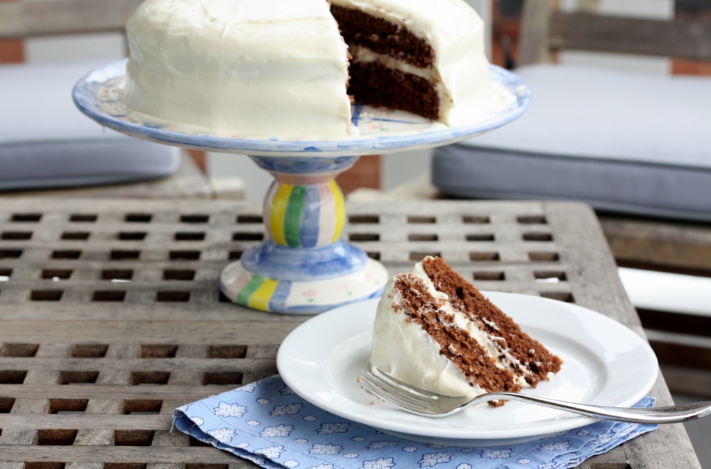 For a printer-friendly version of this recipe, please click here: Chocolate Cake with Cream Cheese Frosting